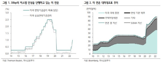 미국 경제가 강하고 노동시장이 타이트하며 인플레이션이 매우 높은 수준에 위치해 있다는 연준 위원들의 공통된 인식하에 5월 회의에서 만장일치로 50bp(1bp=0.01%포인트) 빅스텝 인상을 단행했다.